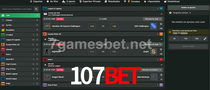 A aposta 107Bet oferece aos jogadores a experiência mais conveniente de apostas em eSports!